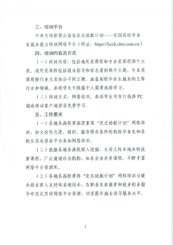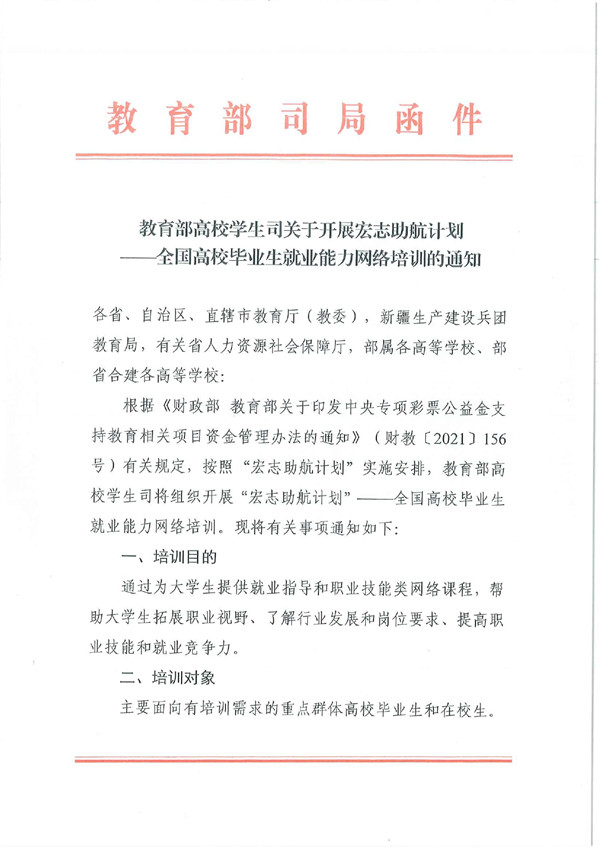 教育部高校学生司关于开展宏志助航计划网络培训的通知