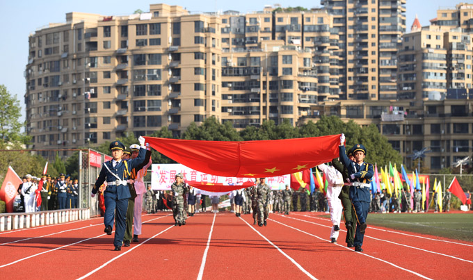 10月9日上午,我校第二十五届田径运动会开幕式在田径运动场举行。