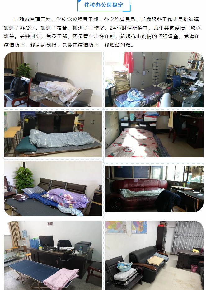 沧海横流,方显英雄本色。教职员工以校为家,夜以继日,默默住校守护,科学防控、精准施策,坚决防止疫情输入校园,全力保障师生的身体健康和生命安全,以实际行动贯彻落实好党的二十大精神。