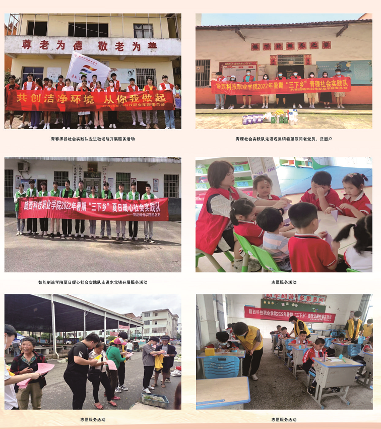 2022年暑期,赣西科技职业学院围绕理论普及、党史学习教育、乡村振兴、文化传承等主题组建社会实践团队。参与实践213人。开展红色走读、青马工程骨干实践、志愿服务、送医下乡、乡村支教等专项活动。活动开展期间,收获了不错的反响。其中,乡村振兴促进团影响覆盖人数高达1000余人次。实践人员撰写心得体会200余篇,制作绘画、书法、视频、新媒体作品各类文化产品。他们用实际行动抒写青春之志,用汗水投身基层贡献力量,以优异的成绩向党的二十大献礼。