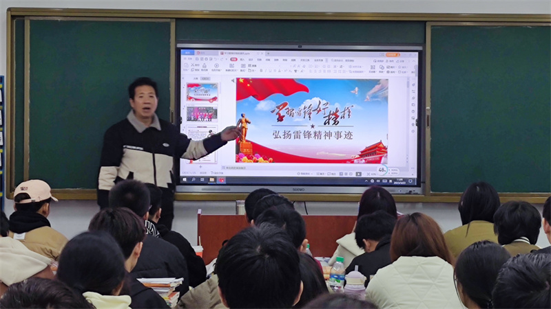 为贯彻落实习近平总书记关于深入开展学雷锋活动的重要指示精神,教育引导广大学生厚植爱国主义情怀,营造“学习雷锋、奉献他人、提升自己”的浓厚氛围,不断加强我校学生对雷锋精神的理解和传承。3月以来,学校思政部开展了“雷锋精神”进思政课堂活动,思政课教师在各自课堂内,以“弘扬雷锋精神,争做时代新人”为主题,组织学生集体学习“雷锋精神”。