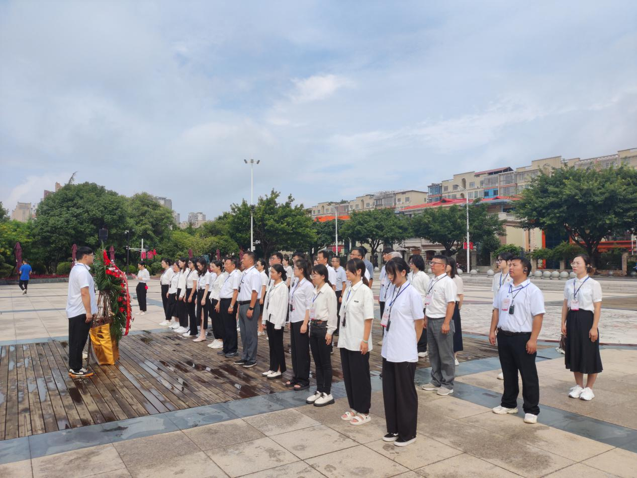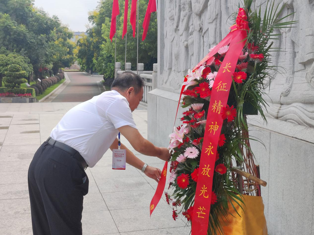 8月22日上午,学员们追寻长征革命烈士的足迹,来到中央红军长征出发地纪念园,在中央红军长征出发纪念碑下,全体学员庄严肃立,向革命先烈敬献花篮,并重温入党誓词,表达对革命先烈的崇高敬意和深切缅怀,感悟党的初心与使命。