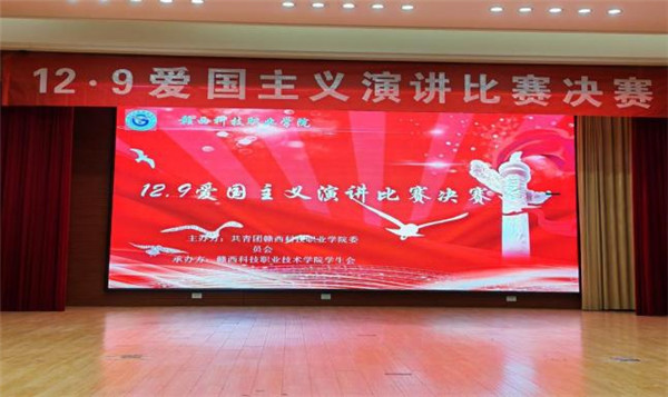 爱国主义演讲比赛 12月8日下午,由校团委主办,校学生会承办的“弘扬‘一二·九’精神 争做新时代青年”爱国主义演讲比赛决赛在学术报告厅举行。
