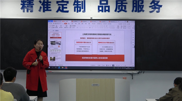 为深入贯彻落实习近平总书记关于“大思政课”建设的重要指示批示精神,持续推进思想政治理论课教学改革创新,增强课堂教学效果,提升学生思政课程学习的获得感,我校思政部积极探索“一课多师”课程教学模式,打造“师生同台”示范课,取得初步成效。