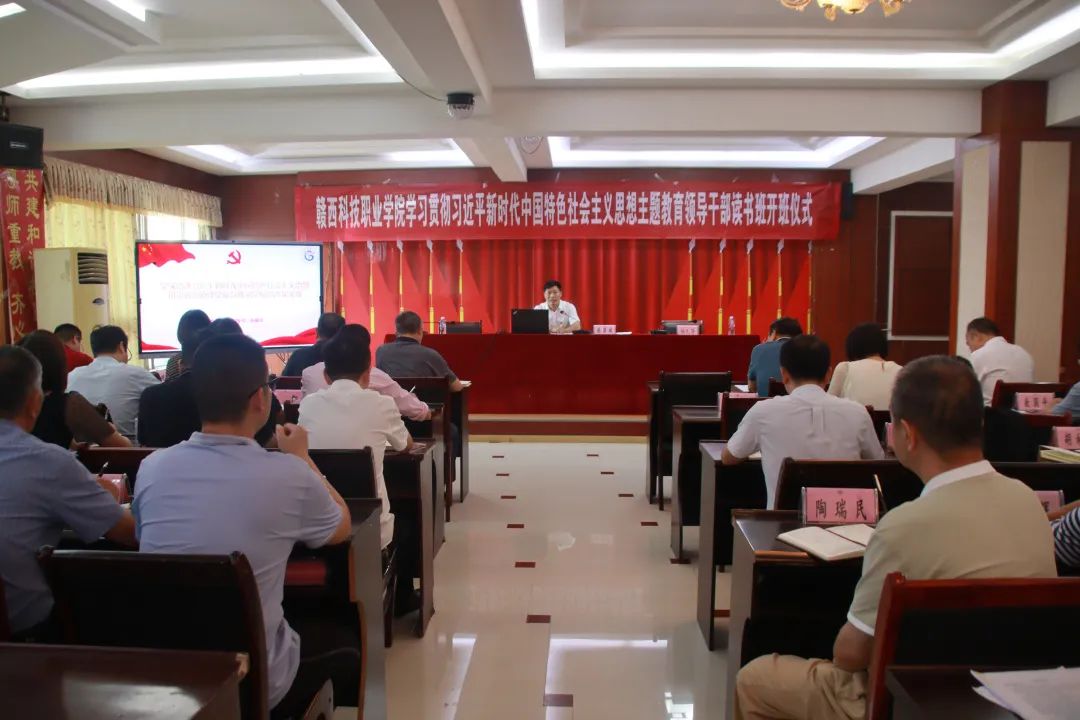 9月26日下午,学校在图文信息中心三楼会议室举行学习贯彻习近平新时代中国特色社会主义思想主题教育领导干部读书班开班仪式。学校党委书记、督导专员、主题教育领导小组组长张国斌作动员讲话并作专题党课辅导。校长孔华等全体党政领导班子成员、新余市教育局主题教育指导组领导、学校全体党员、全体中层干部、各党支部负责人及支部委员参加开班仪式。