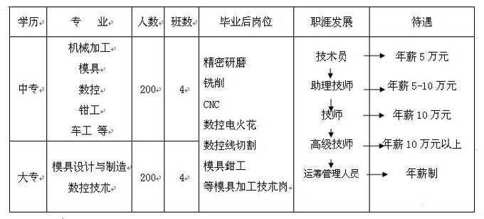 6﹑“定向班”学生在毕业之前,需接受该公司模具培训中心实施的准军事化管理,从“德、智、体”等进行培训3-6个月(含食宿)。