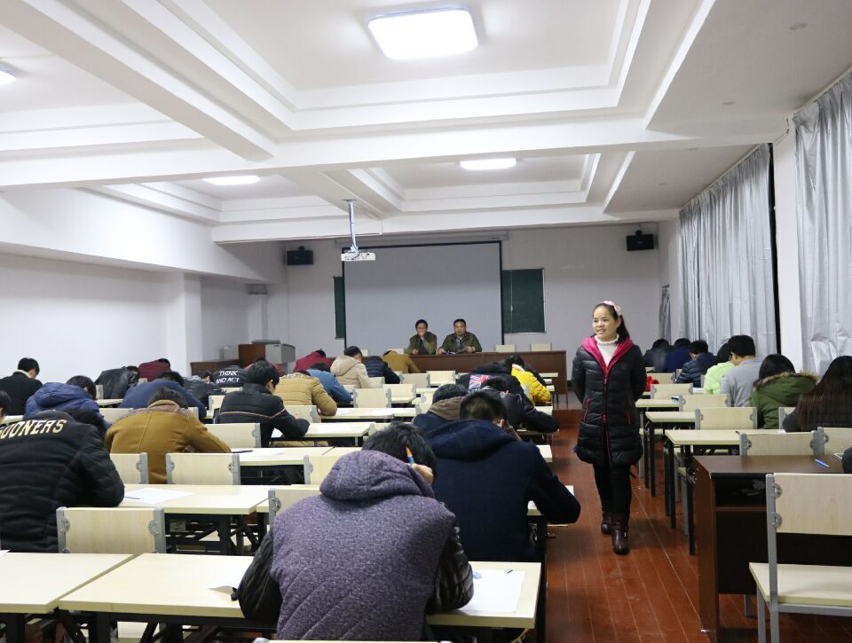 2016年1月5日晚7:00,按教学计划安排,我院富士康鸿准精密模具定向班14级和15级学生在院学术报告厅参加了由富士康鸿准精密模具有限公司和汽车机电系共同组织的期末考核,考核现场由汽车机电系主任赵显城主考,两个年级班的班主任监考,通过考核结果反馈,我院学生的学习水平、能力水平得到了认同,近30%的学生成绩达到80分以上,50%以上的学生达到70分以上。说明我院对富士康鸿准精密模具定向班的教学取得了很好的成果。