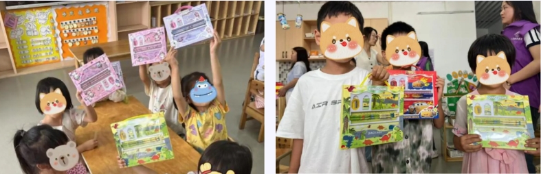 爱心传递温暖:文具礼包助启航 活动的最后,是充满温情的爱心传递环节。实践队队员们为幼儿园的每一位小朋友送上了精心准备的文具礼包。礼包里有彩笔、画本、铅笔、橡皮等学习用品。当队员们将礼物送到孩子们手中时,一张张纯真的小脸上洋溢着惊喜和幸福的笑容。这些小小的文具承载着队员们对乡村儿童殷切的期望和美好的祝福,希望能为他们的学习之路增添一抹亮色,助力他们勇敢追逐心中的梦想。