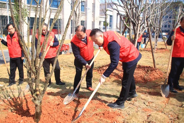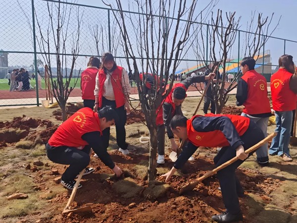 此次活动中,全体参与人员同心协力,共栽种紫玉兰、红叶李、紫薇等苗木三十余株,为初春校园增添新绿。活动不仅切实改善了校园生态环境,更以实践育人为抓手,将生态教育、劳动教育与思政教育深度融合,让师生在躬身实践中凝聚生态共识、厚植责任担当,进一步强化了环保意识和校园主人翁精神。
