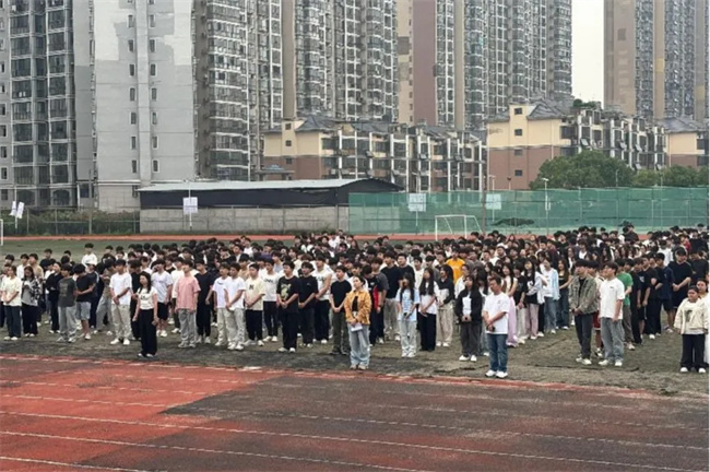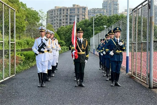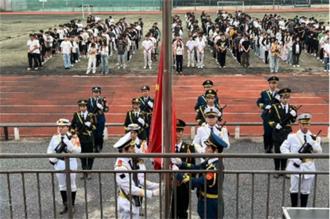 晨光微熹,国旗仪仗队迈着铿锵有力的步伐护卫五星红旗走向升旗台。伴随着激昂的《义勇军进行曲》,全体师生肃立注目,鲜艳的国旗冉冉升起,迎风飘扬。升旗仪式上,主持人说道:“爱国情怀与心灵健康密不可分。青年学子既要坚定理想信念,传承红色基因,也要以阳光心态面对挑战,在成长中锤炼坚韧品格。”