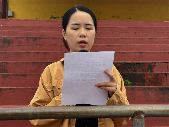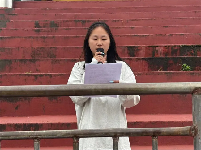 教师代表叶慧慧在发言中聚焦心理健康教育的实践路径。她提出三点倡议:一是学会倾诉与调节,通过运动、艺术等方式释放压力;二是接纳自身不足,以积极心态拥抱成长;三是共建温暖校园,师生携手营造包容互助的氛围。“心理健康是全面发展的基石,我们愿做学生的引路人,让每一颗心灵都能在阳光下茁壮成长。”叶慧慧的发言真挚恳切,为师生注入温暖力量。