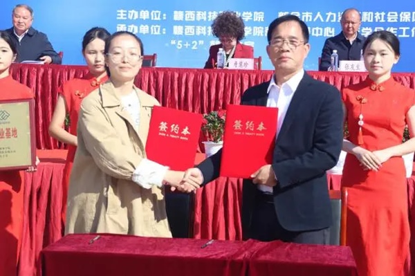 现场举行校企合作校外实习就业基地签约暨授牌仪式。李良松代表校方,分别与厦门新能安科技有限公司、石狮市绿岛国际酒店有限公司、南亚新材料科技(江西)有限公司、芜湖长信科技股份有限公司、振宜汽车有限公司等五家企业完成签约,并授予“校外实习就业基地”牌匾。