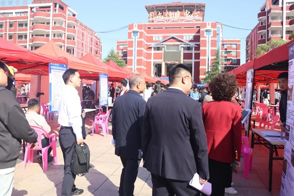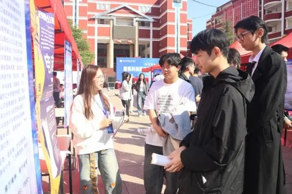 双选会现场气氛热烈,2026届毕业生们手持精心准备的简历穿梭于展位之间,主动询问岗位要求、职业发展路径与薪资福利;企业HR耐心解读招聘政策,现场开展初筛面试,高效推进人才对接。校领导与二级学院负责人深入现场,既与企业代表交流招聘需求,也为毕业生提供求职指导,勉励大家主动展示自我。