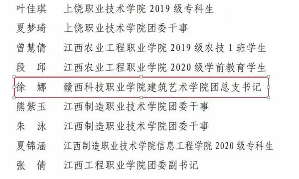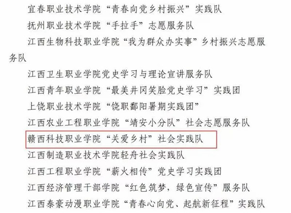 在学校董事会、党委会、校务会的正确领导和大力支持下,我校在江西省委宣传部、江西省文明办、江西省教育厅、共青团江西省委、江西省学生联合会组织开展的2021年江西省大中专学生志愿者暑期“三下乡”社会实践活动中,经济管理学院“关爱乡村”社会实践队被评为全省优秀实践团队、建筑艺术学院团总支徐娜老师被评为全省优秀个人称号。
