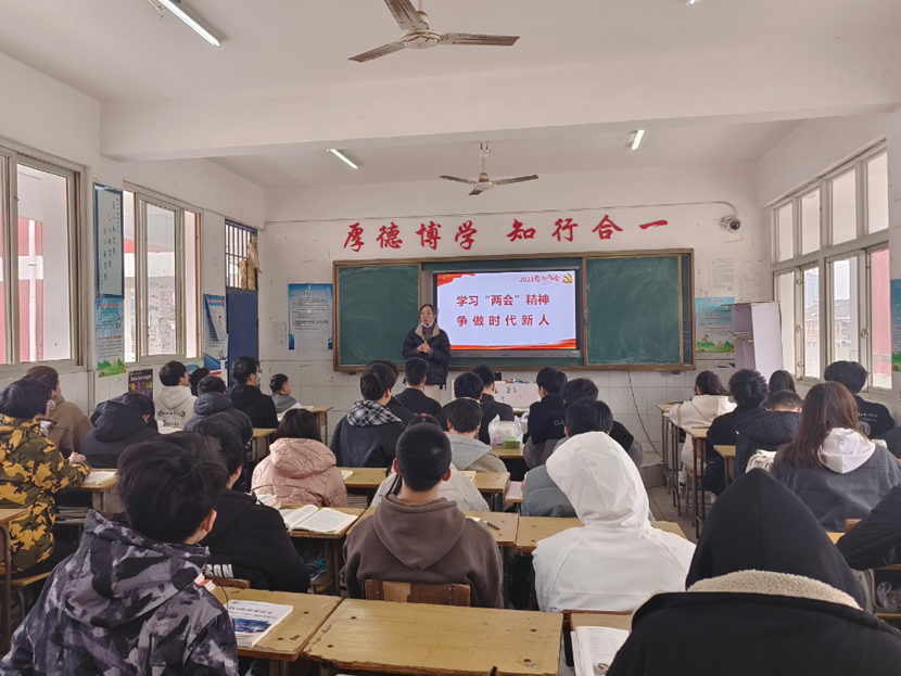 为深入学习贯彻2023年全国两会精神,推进两会精神融入课堂教学,切实提升思政课的思想性和理论性,近日,赣西科技职业学院思政部“形势与政策”课程教研组教师化身为宣讲员走进班级,把全国两会知识搬进课堂,为同学们系统解读全国两会精神,引导同学们关心国家大事,激发爱国热情。