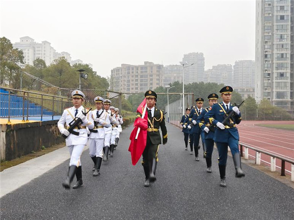 2023年12月4日上午,在我校师生的注目下,伴随着国旗仪仗队护旗方阵铿锵有力的步伐和《义勇军进行曲》雄壮的旋律,五星红旗冉冉升起,迎风飘扬,在场全体人员向国旗行注目礼,表达对祖国无限的热爱和崇高的敬意。