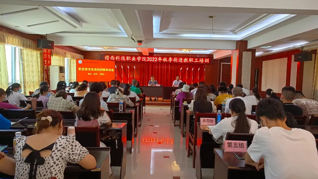 2022年8月25日下午,新进教师岗前培训开班仪式在行政楼会议室举行,董事长詹慧珍、党委书记张国斌、校长孔华、党委委员、宣传部长、校长助理姚继超出席活动。