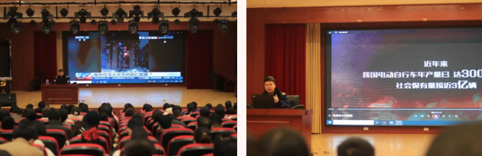 在消防安全知识讲座中,刘剑介绍了消防安全现状,强调了消防安全工作的重要性。他通过剖析重特大火灾案例、播放消防警示教育片、讲解消防理论知识等方面,详细阐明了火灾的种类成因和危害以及做好日常防火的重要性,深入讲述了消防法律法规、火灾基本常识、校园火灾防范、正确报火警、火灾自救方法、扑灭初期火灾、消防器材使用等消防基本知识,并结合学校的实际情况就如何排查火灾隐患进行了技术指导。