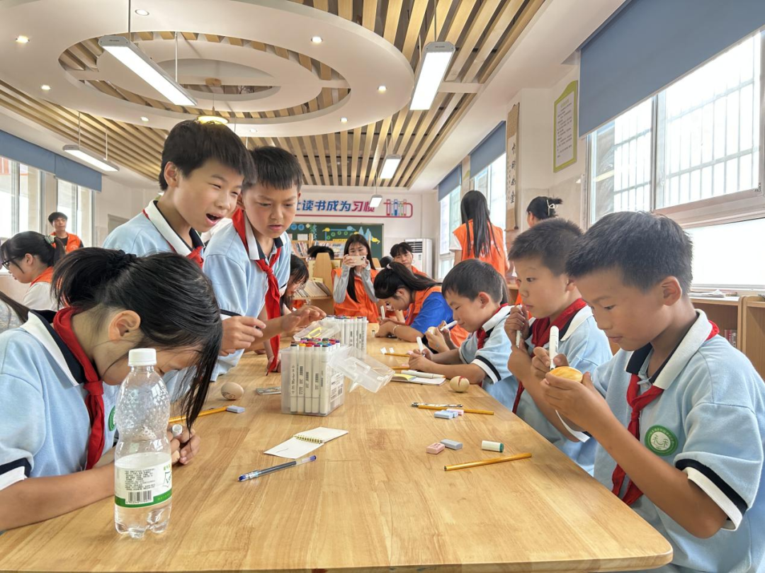 在队员们的陪伴下,孩子们纷纷拿起水彩笔,画起了端午彩蛋。彩绘端午蛋需要大家用画笔在鸡蛋上绘出丰富的图案,每个孩子都兴致勃勃地拿彩笔在鸡蛋上绘制出各种有趣的图案,将其丰富的想象力及创意在鸡蛋上发挥得淋漓尽致。孩子们绘制完彩蛋后,用彩绳编织成袋子将彩蛋放入后悬挂于胸前。