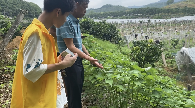“冬暖夏凉,薄如蝉翼。”这便是对夏布的真实写照!夏布起源于汉代的荣昌夏布,历史悠久,汉代的夏布又称其为“蜀布”,在唐朝时期又被称为“筒布”,“斑布”,属于当时的贡布,在老师傅的指引下,志愿者们踏上了“夏布之旅”。来到纺织间浏览制作夏布的工具、和一整套工艺流程, 夏布的价值昂贵,其主要原因是工序复杂,从打麻、绩纱、经纱、刷布,到最后的织布都是纯手工制作。在这里⻅到了夏布非遗传承人奶奶们,穿戴腰机,手往前推,腿部伸缩,经线便按规律上下分开,看着⻜梭在传承人手中来回互换,⻜梭带着纬线在穿插于经线之间,整个过程可谓是行云流水。在传承人手把手的细心指导下,实践队队员们也亲身体验了一次织布的过程,感受到编织的艰难,技术的宝贵,纺织的过程也是对心灵的一种沉淀。而后夏布画《江山如此多娇》作者昌道根老师,带我们走进树林寻找夏布原材料的足迹——苎麻,昌老师为我们细心讲解了苎麻成为纺织线的过程。