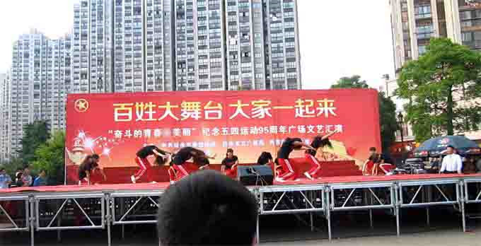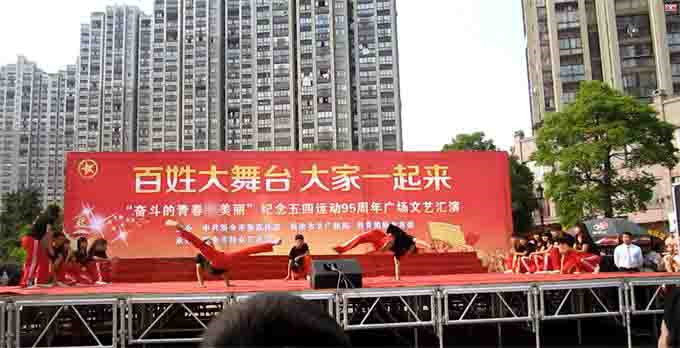 演出前,舞蹈社团所有成员认真排练,积极参与。新余市文化艺术团于4月29日进行了节目彩排,针对节目情况进行了指导,经过精心准备于5月6号在新余市抱石广场进行演出。新余市第四中学、新余学院、渝工学院等院校也参加了本次活动。整个活动井然有序,气氛热烈,掌声不断。