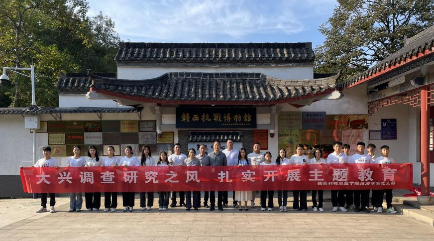 为推动习近平新时代中国特色社会主义思想主题教育走深走实,教育引导党员教师深刻感悟初心使命,切实当好红色基因的传承者、宣传者、践行者。10月31日下午,政法学院党支部全体党员以及入党积极分子前往赣西抗战博物馆进行实地“红色走读”活动,重温抗战历史,缅怀革命先烈。