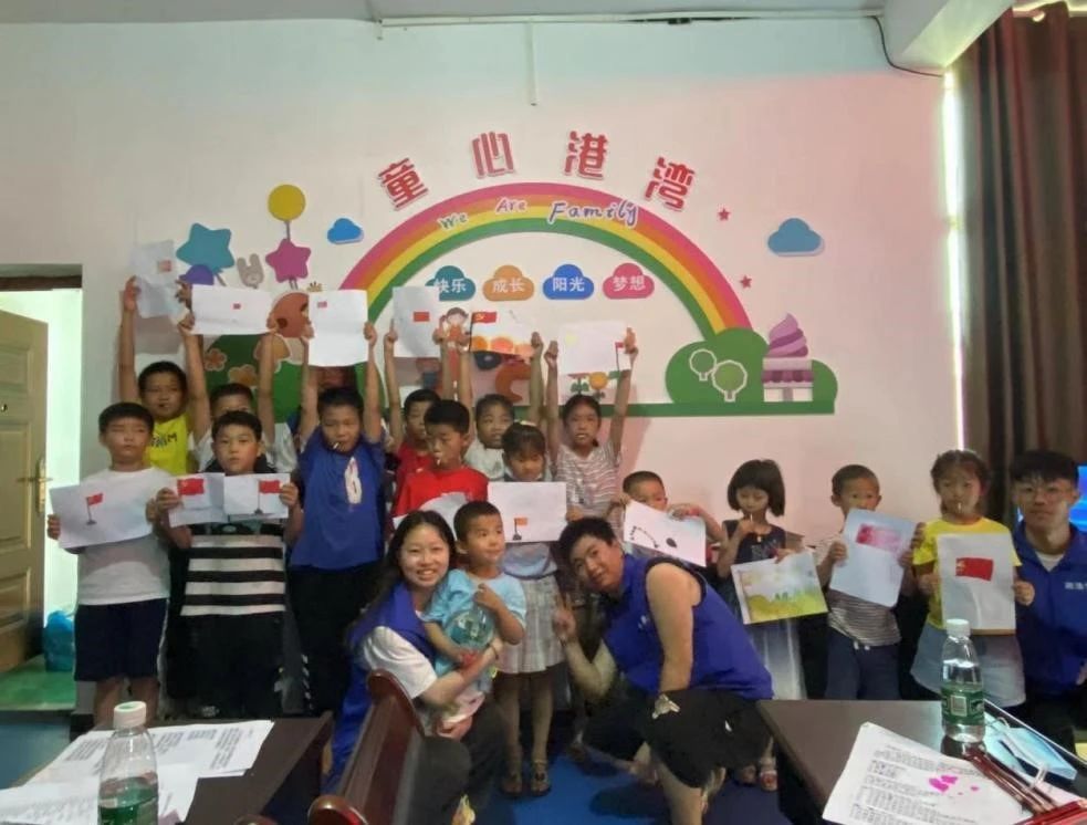 天气炎热溺水事故频发,队员们给留守儿童们宣讲了防溺水安全小知识,科普防溺水知识六不准。经过宣讲,孩子们自告奋勇上台背诵防溺水六不准,对防溺水有更全面的了解,增强了孩子们对溺水事故的防范意识。不仅如此,队员们还为孩子们讲解党史知识、建党节的由来,引导他们从小树立爱党爱国的情怀,增强爱党爱国意识。 最后,队员们为孩子们送上了精心准备的书包、文具、绘画工具等学习用具,并鼓励孩子们努力学习,积极向上。